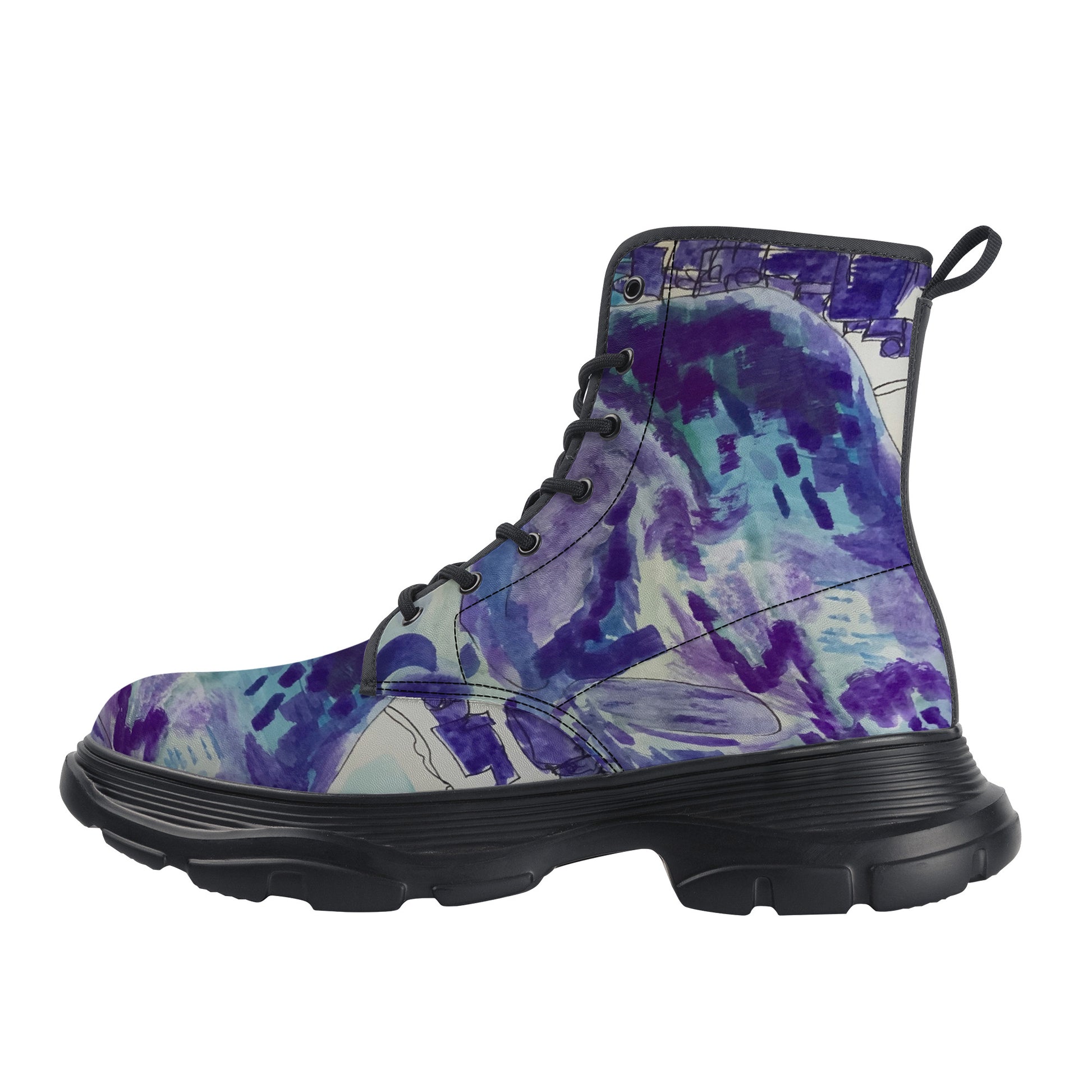 • Lightweight rubber, eco-friendly PU upper and EVA outsole for chunky boots.